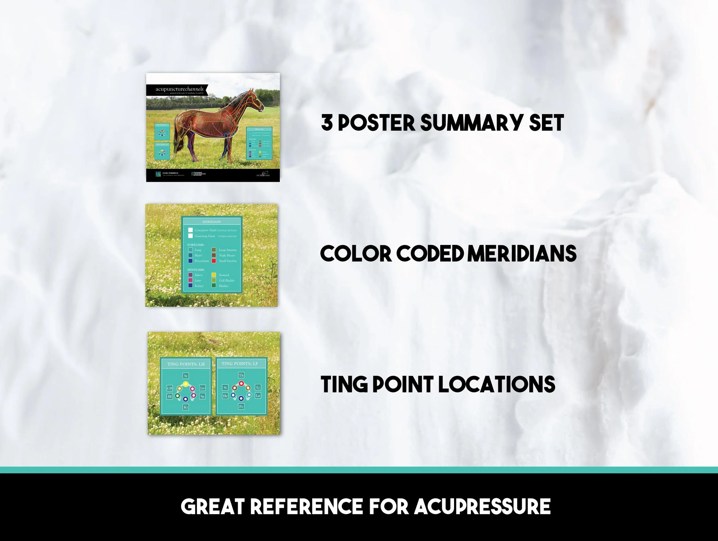 Equine Acupuncture 3 Poster Set. Summary, Yin and Yang Charts