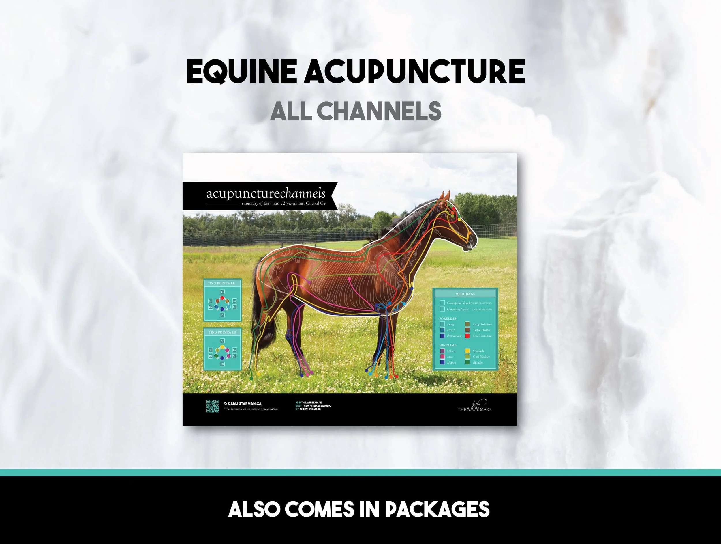 It is part of a larger equine anatomy series and can be purchased as a stand alone or in sets for savings. These sets are acupuncture specific or tailored to horse professionals such as therapists, trainers, owners and saddle fitters.