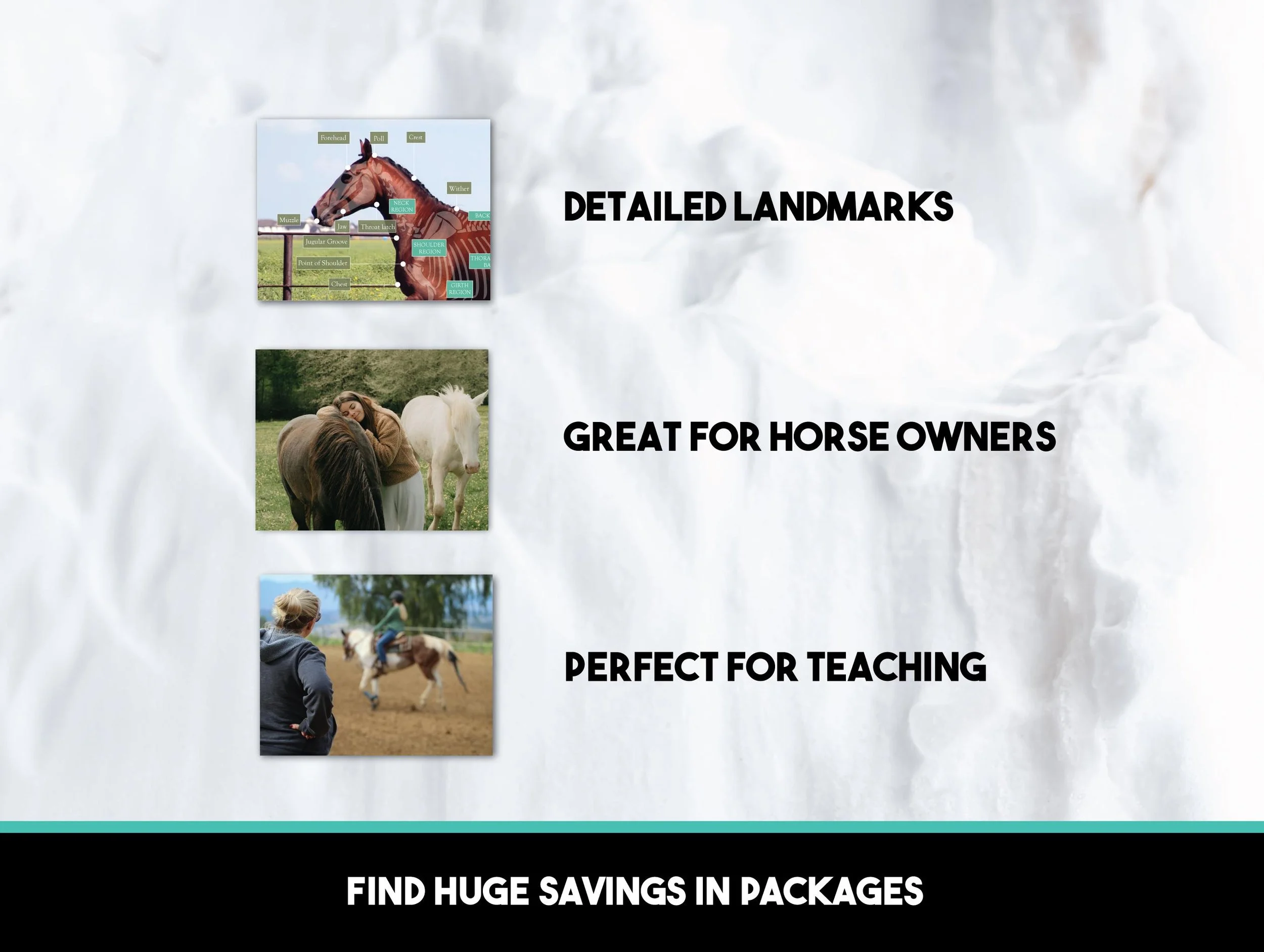 This is part of a larger equine anatomy series and can be purchased as a stand alone or in sets including the many other anatomy posters as tailored to your specific goals!