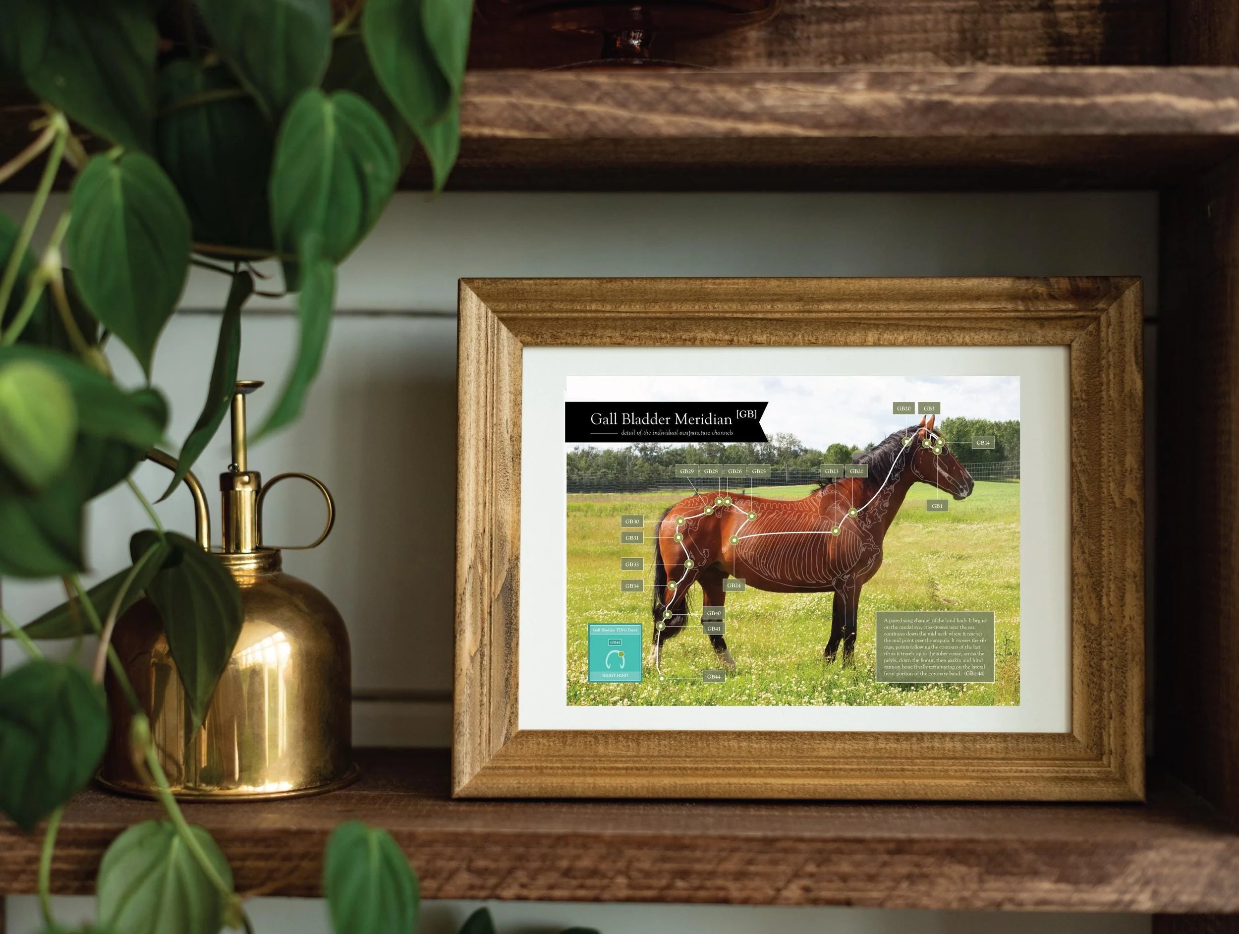 Equine GallBladder Acupuncture Chart. Horse Acupressure Channels. Single Poster