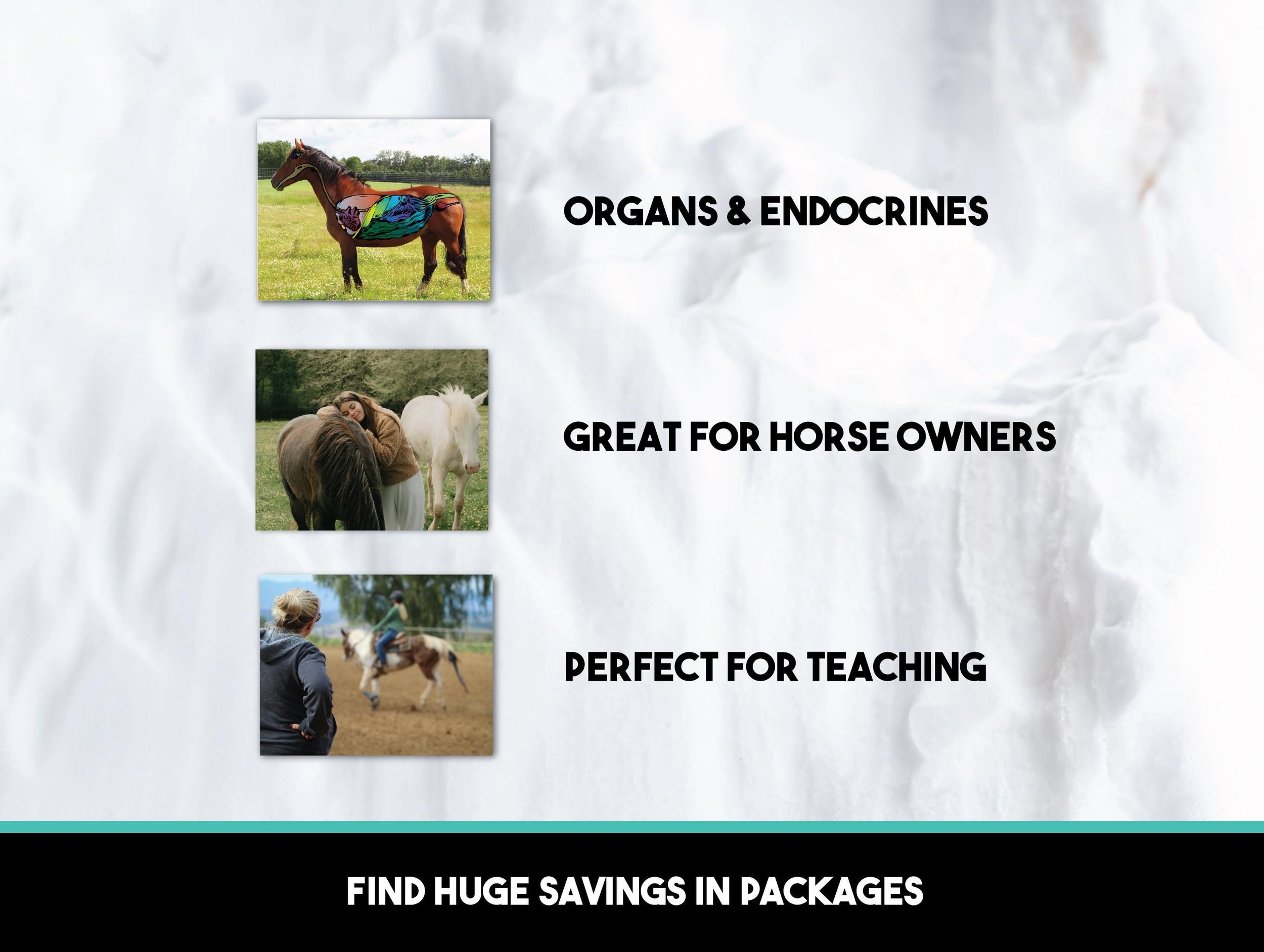 These are part of a larger equine anatomy series and can be purchased as a stand alone or in sets including the many other anatomy posters as tailored to your specific goals!